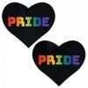 Love Rainbow PRIDE on Black Heart Nipple Pasties by Pastease are hand made in the USA of soft form fitting material that forms seamlessly to curves and resists wrinkling over hardening nipples. Just peel and stick on clean, dry skin.