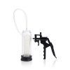 Easy pumping action! Pistol Pump is a classic penis pump. Pistol grip trigger with a supple noduled removable internal Senso sleeve. The Senso sleeve is a very stretchy rubber material with bumps on it for extra stimulation. Lubricant included. Safe and pure for body and pleasure. Made using phthalate free, non-toxic materials PVC sleeve, hose, ABS plastic cylinder, pump. Cylinder measures 8 inches long by 2.5 inches wide. Bulk weight 13.3 ounces. Always clean before and after use.