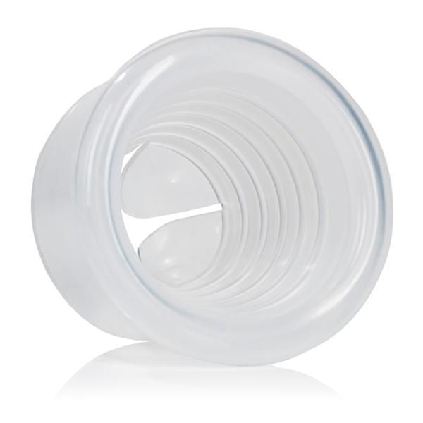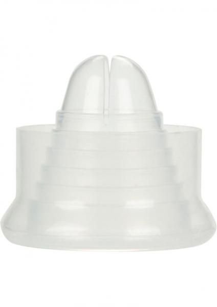 2.25 inches by 2.5 inches. Soft and stretchy universal pump sleeve fits cylinders up to 3 inches diameter. Silicone