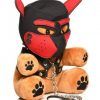 Introducing the cutest little kinky bear you’ve ever seen! This plush bear comes with its own bondage gear and is ready for some pup play! Even bears can play pretend, and this bear loves to wear his hood and muzzle. Walk him around on a leash that attaches to his collar and hold onto him by his harness. You can buy this for yourself, include it in a bachelorette game, give it as a gag gift or novelty gift, or even give it as a sentimental gift to your favorite bear or kinky pup! Made out of polyester, this bear is soft and cuddly and does anything you tell him too! All leather is vegan and his pup gear is neoprene. Spot clean as needed. Measurements : Overall: 9 inches Long x 7.3 inches Wide x 5.5 inches Deep. Materials : Polyester, vegan leather, Neoprene, ABS plastic, metal Color : Brown, black, red Note : Not intended for children.