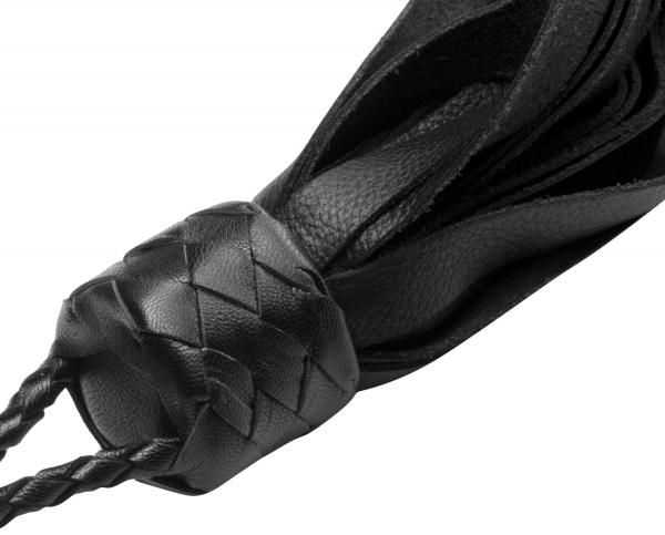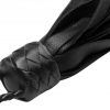 Palm floggers are ideal for when a long handle will just get in the way. This medium intensity flogger is made of a high quality leather with a nice grain. The handle is wrapped, and fits neatly into the palm of your hand, with a braided leather wrist loop. The flat tipped falls are soft, flexible, and give a good thud upon impact. Perfect for tight spaces, between the legs, or more up close and personal play. This fine quality flogger is sure to give you years and years of excellent performance. Measurements: Falls measure 18 inches in length. Material: Leather. Color: Black Warning: This is a NEW item that is not in retail packaging, usually a plain box, wrapped in plastic or a poly bag.