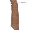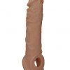 Realrock Penis Sleeve 8 inches Tan Medium Skin Tone from Shots Toys. Be the bigger, better deal. The super life like shapes, textures, and colors of this dong truly look and feel like the real thing! Made from Phthalate free Skin Thermoplastic Elastomers TPE, this squishy material mimics the softness of real skin and is completely body safe. This beautifully crafted dildo is made by injection molding in order to eliminate smell and defects and at the same time increase its thermo stability and durability. Shaft comes with a strap for balls. Plus it helps keep the sleeve in place.