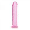 Realrock Realistic Straight Dildo 9 inches Pink from Shots Toys. Ready for a Crystal Clear orgasm? Reach your finest climax in style with these beautifully shaped, clear dildos. This dildo can see right through you and will know exactly how you like it. This dildo is suitable for anal and vaginal use! Finger like precision stimulation, great for yummy anal stimulation, and definitely a clitoris friend? You will find all that and more in this dildo! The base functions as a suction cup for hands free use, but also gives it the ability to be used in a harness. All Realrock Crystal Clear dildos are phthalate free, latex free, body safe and non-porous which makes them easy to clean and gives them a longer lasting durability. This model stands 9.8 inches tall including the suction cup, has an insertion length of 9.1 inches and has a girth of 1.8 inches.