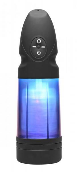 This multi function, automatic, rechargeable stroker is loaded with features for an incredible masturbation experience! The inner chamber is made of firm, stretchy rubber, lined with textured fingers to stroke you into ecstasy. The thrusting and swirling motion will move up and down your cock, stimulating you with every stroke. With 6 modes and 3 speeds to choose from, you can choose how fast or slow you want it. Splashproof and designed for an easy grip, this easy to use masturbation aid does practically all the work for you. In addition to all these exciting features, it even has a light-up display, for an incredible one-man show! Includes a USB cord so you can charge it on the go, just plug into your nearest USB port to power up, making it the perfect companion for computer viewing. Measurements: 10.5 inches in total length, 3 inches in diameter Material: TPE, ABS Color: Black Note: Comes with USB cord