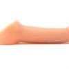 Color Beige. Type: P.P.E. (Prosthetic Penis Enhancer) Material: Silicone Roll the sleeve one third of the way down. Apply lubricant to the inside of the Ride On and your penis. Squeeze out the air. Place your penis in the opening and gradually release the pressure. Roll down the Ride On to the base. Pull the scrotum through the hole. Pull to one side and push through testicle. Repeat with the other. Have fun! Outer: 6-¼”x 1-¾”Inner: 4″x 1″2.5 inch solid tip