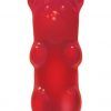 Realistically shaped mini gummy bear vibrator. Contoured grooves provide additional stimulation. Realistic, gummy soft Thermoplastic Elastomers TPE. Ultra powered motor packs a sweet punch. Discreetly sized for travel. Splashproof design. Available in Blue, Pink, Purple and Red. Dimensions total length 2.5 inches. Carded packaging measures 3.5 inches by 6 inches.