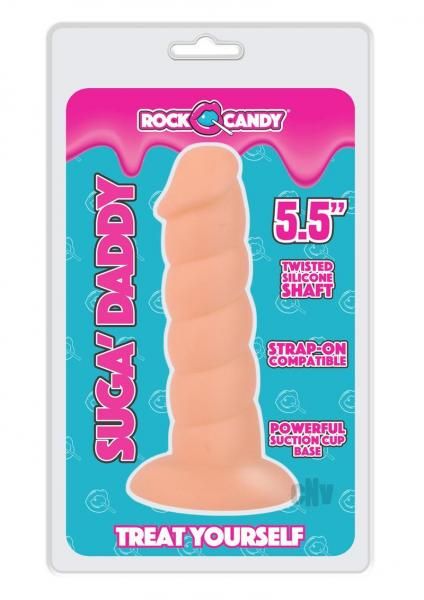 How many inches does it take to get to the center of your sweet spot? The Rock Candy® Sugar Daddy® is up for the challenge! Even better than the real thing, this chunky hunk is crafted to satisfy your deepest carnal cravings. The Sugar Daddy features an extra thick and twisted silicone shaft. The realistic head will tease and please the G-spot or P-spot as long as you can take it! With a flared suction cup base, the Sugar Daddy is harness-compatible for all types of play. Let the big Daddy show you that the candy man certainly can!