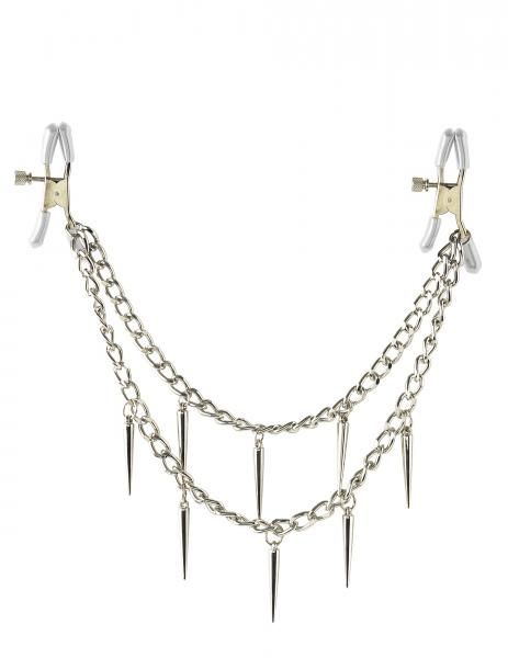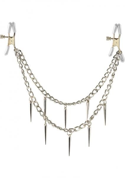 Make your nipples perk with pleasure with these Pipedream Rock Hard Nipple Clamps. Made with durable metal clips and covered in soft rubber liners, these clamps are perfect for beginners and fetish enthusiasts alike. The amount of pressure you apply to the nipple is adjustable by turning the screw, while the two chains give you subtle stimulation with each movement. Made of metal and rubber.