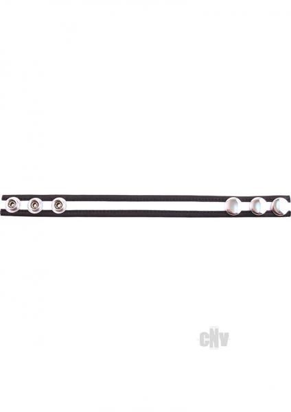 Soft leather cock strap with three snap buttons for adjustable sizing.