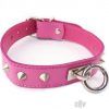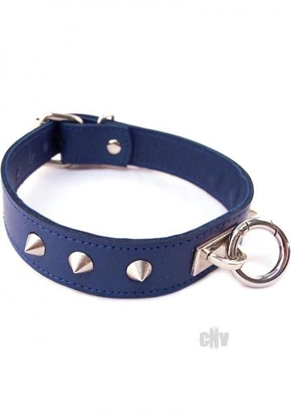 Studded collar made of leather with a removable O-Ring and riveted studs. Color Blue.