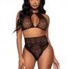 2 PC Sheer butterfly applique bra top and g-string panty. Small Black