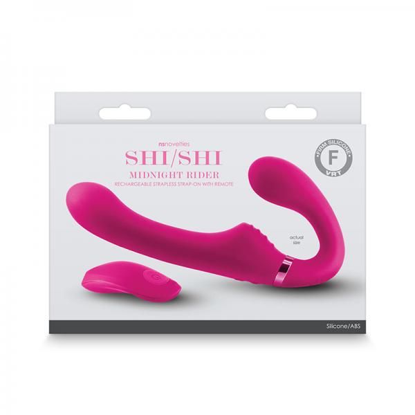 Double the pleasure and double the fun with the Midnight Rider from the ShiShi collection. With explosive excitement at both ends, this strapless strap-on is especially designed for her and hers. Operated with a wireless remote, a whole new world of sensations awaits. Made of silky silicone, it is rechargeable and suitable with all lubricants.