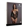 Lace-pattern mini dress with high open neck-line. This dress has a lot of stretch and can be worn from size S to XL.