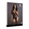 High neck mini dress with lace-pattern border and striped pattern. This dress has some stretch and can be worn from size S to L.