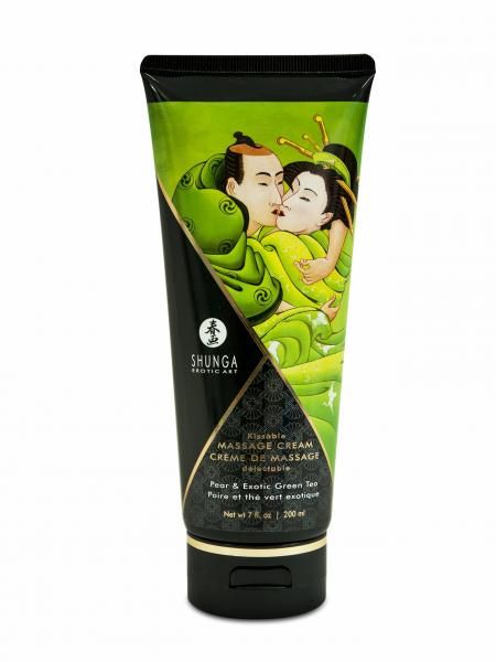 Shunga Erotic Art Massage Cream Pear and Green Tea exquisite taste. Silky smooth, edible and moisturizing. Slides on easily and is long lasting. Leaves the skin feeling fresh and non-greasy. This cream will leave the skin tasting delicious! Caress your partner with this delectable massage cream. Get close to your lover with this tasty treat and feel the softness of their skin against yours. Let the sexual tension rise and bring eroticism to a peak!