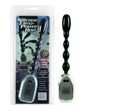 Hi-tech Silicone power rod flexes in a multitude of directions, and features 7 infinite and powerful levels of vibration, pulsation, and escalation! 3 AA batteries, not included.