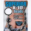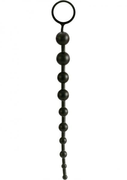 Hygienically superior Silicone X-10 Beads. Black super-stretchy and pliable silicone graduated beads with handy retrieval ring. Multi-purpose.