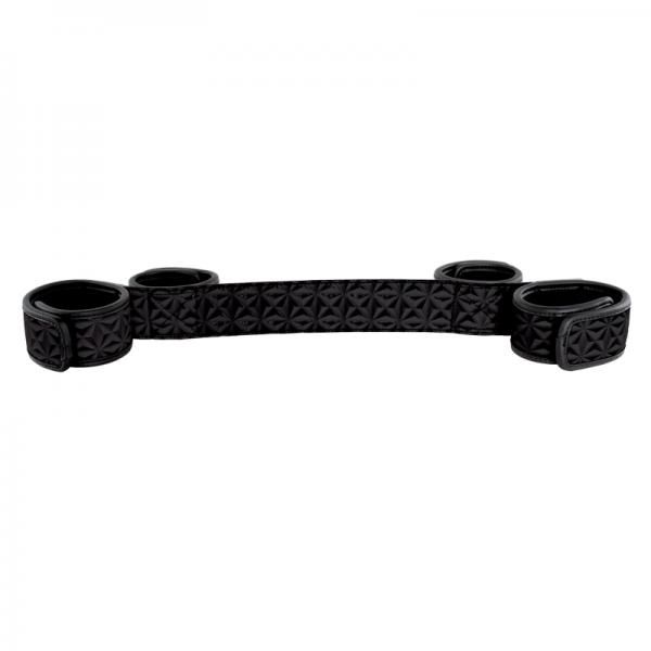 The Soft Spreader Bar from Sinful Bondage brings comfort and fun to a compromising position. Featuring strong Velcro wrists and ankle cuffs with neoprene padding and an attractive vinyl finish. Safe, durable and easy to use, it is top of the line gear for BDSM beginners and enthusiasts alike.