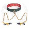 Spartacus PU Beginners Wrist Restraints . Green PU outside of cuff, red PU inside. gold accents and chain/hardware.