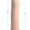 Measurements 6.75 inches in total length, 6 inches insertable length, 1.5 inches at widest diameter, 1.35 inches at narrowest diameter, unmanipulated. Material Silexpan silicone. Color Beige.