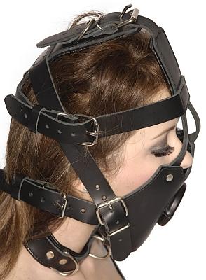 The Strict Leather Premium Muzzle with Open Mouth Gag is an intense and extremely sexy addition to your bondage gear collection! This high-quality leather muzzle allows you to securely restrain your partner yet have easy access to their mouth. The buckle straps easily adjust for the perfect fit, while D-rings along the collar and head make this compatible with other bondage accessories such as a leash. Keep your partner restrained and under your control yet free to fulfill your desires! Measurements: Collar strap adjusts from 14-20.25 inches; top of head strap adjusts from 7.25-13 inches across; forehead straps adjust from 11.5-14.75 inches on each side; back of head straps adjust from 4.5-8.5 inches on each side; jaw straps adjust from 4.5-8 inches on each side; and mouth gag measures approx. 1.5 inches in diameter and 1 inch deep. Material: Leather. Color: Black. Note: Features eight buckle closures. Collar features three D-rings. Back of head strap featured one D-ring. Warning: This is a NEW item that is not in retail packaging, usually a plain box, wrapped in plastic or a poly bag.