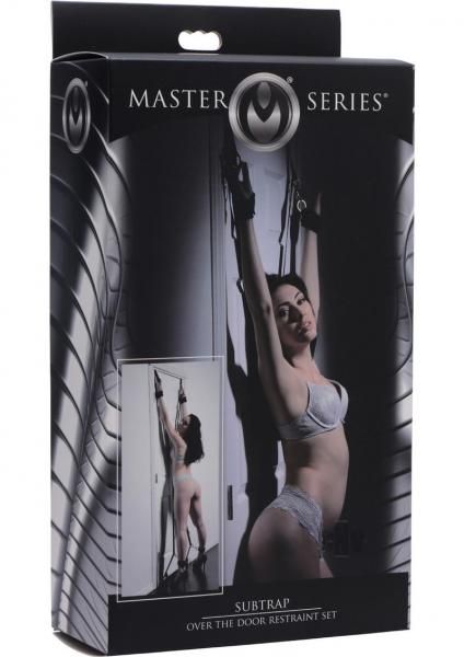 This fully adjustable restraint system is designed for use against a door. Turn any room into a sex dungeon when you secure the solid ABS plastic dowels over the door. Interior balls at the bottom of the restraints keep them fastened beneath the door. When the door is shut, your new bondage furniture will be secure and ready.