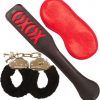 Sex and Mischief Sweet Punishment Kits from the Grey Collection by Sportsheets. Three piece set includes one blindfold, one impressions black leather XOXO slapper paddle and one pair of furry handcuffs plus release keys. Blindfold your lover with the Sex and Mischief Satin Blindfold. This silky, soft, eye covering is the perfect way to conceal sexy, exciting secrets and fantasies as you prepare and act out a night of teasing and pleasure. Your partner will have no idea what’s in store! The elastic band fits comfortably around his or her head, and the mask is cut for total coverage. No peeking! One size fits most. XOXO Impressions Paddle is a high quality, tanned leather slappers have stitched handle and separate at the top. Called slappers because of the great sounds they make on your partners backside, these paddles will certainly help you leave your mark. Handcuffs are covered with faux fur for added comfort. Separated by a simple chain. Plus 2 release keys for safety safe. This item makes a great starter set for loving couples. The Sex & Mischief Collection by Sportsheets has taken the adult industry by storm. Sex and Mischief, Grey Collection, Impression Paddle are registered trademarks for Sportsheets.