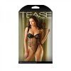 Floral Embroidered Mesh Bodysuit with Adjustable Shoulder Ties and Snap Crotch Closure