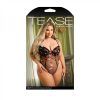 Floral Embroidered Mesh Bodysuit with Adjustable Shoulder Ties and Snap Crotch Closure