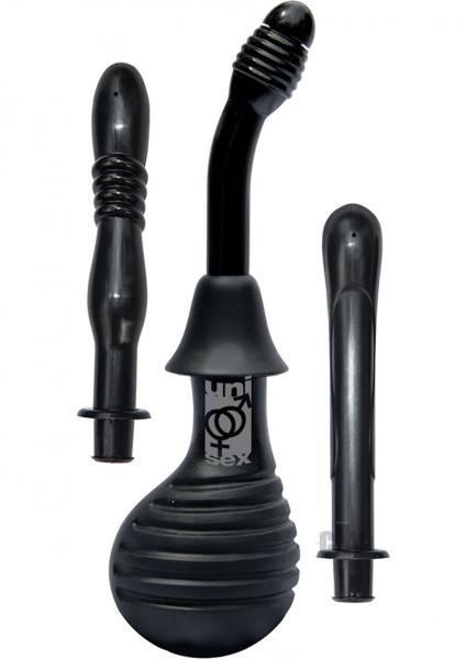 Big Douche Black is easy to use. For him and her. Anal and vaginal use. 3 unique attachments: Honey Dipper, G-Spot, Smoothy. Waterproof. materials: Bulb PVC, Attachments Polypropylene PP. Overall length 10.5 inches, attachment length: 5.75 inches. Unisex for her or him.
