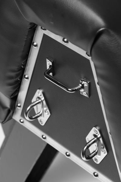 This exquisite bondage horse is sturdily built and made to last. It comes partially assembled no confusing parts or manuals. Designed so that your partner, once on top, is perfectly positioned for whatever you have in mind. There are sturdy rings at the front and back, to which you can attach ropes, cuffs, or any sort of restraint. The outer material is non-porous and makes for easy clean up, and resists any fluids or staining. This is an exceptional piece and a must have for any true bondage enthusiast. It is sure to be one of your favorites for years to come!