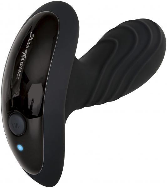 The Gentleman Prostate Massager from Zero Tolerance Toys. Experience the most intense orgasms you have ever had with this powerful rechargeable massager that is designed for easy navigation and pleasure precision. An easy to use one button control is nestled in black base that illuminates with a multi-color LED and fits comfortably in hand.