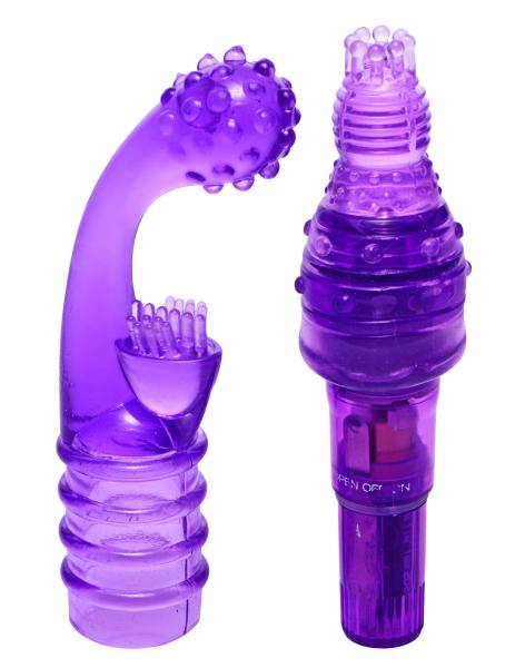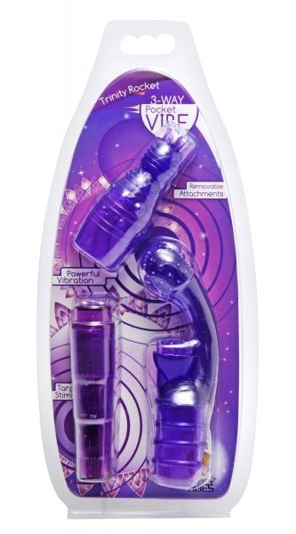 This powerful pocket rocket has two stimulating attachments for three ways to play! The curved G-spot seeking tip has a textured clitoral stimulation pad, which will carry the strong vibration from the motor to you, inside and out. The targeted tingle tip has tiny stimulating nodes at the tip, perfect for pinpoint pleasure. The rocket has three metal nodes for direct stimulation if you want to use it without the tips. Easily cleaned and phthalate-free for a body safe experience. The motor itself turns on with a simple twist, and is waterproof for fun in the bath or shower.