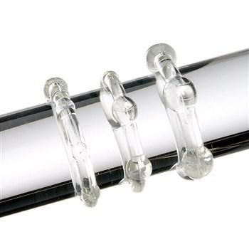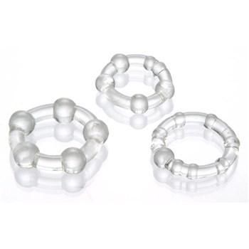 Adam and Eve Triple Erection System. Wear these 3 rings together or separately for new orgasm experiences. Set includes 3 super stretchy clear Thermoplastic Elastomers TPE cock rings. Three levels of support: extreme, intense and tight. Use one ring as you would normally, or use two rings for harder erections or all 3 for an out of this world erection. Wash before and after each use. Always use a water based personal lubricant with this product for maximum pleasure. Important warning: this novelty product is intended as a sexual enhancing aid. Not intended for contraception/birth control or treatment of erection conditions. Use no more than 30 minutes at a time. Allow 60 minutes between additional uses. Do not fall asleep or be under the influence of alcohol or drugs while using this product. Prolonged use without removal may result in bruising to the base or permanent injury to the penis. Consult you physician should any complications should occur and discontinue use immediately.