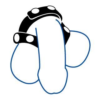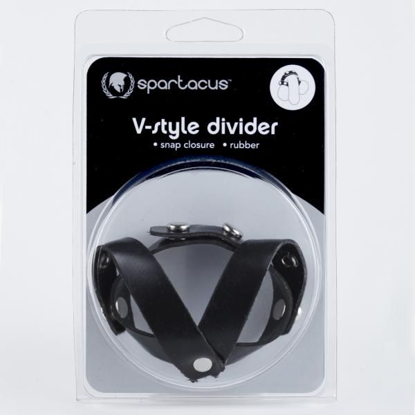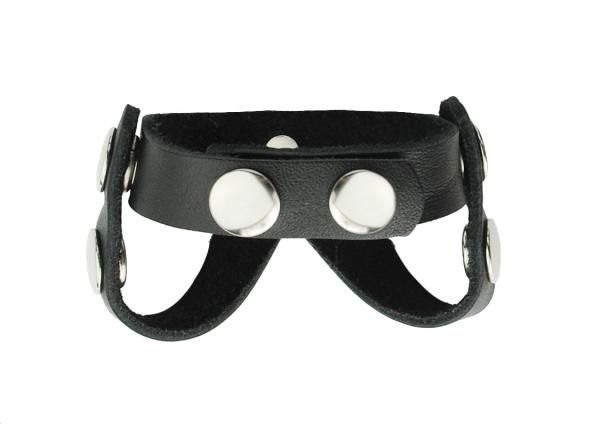 Oiltan leather V-style cock and ball divider, in black or red.