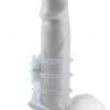 The Vibrating Super Sleeve is a lifelike textured extension that gives you the girth, length, and confidence to satisfy your lover. It is super stretchy to accommodate most sizes and snug enough to help you last longer. The ball strap holds the extension in place, prolongs ejaculation, and features a powerful micro vibe for explosive climaxes. Your partner will enjoy deeper penetration with the 1 inch extension at the tip, while you watch your dick grow bigger and thicker than ever before through the crystal clear sleeve! Try it in the shower or spa and turn bath time into pleasure time!