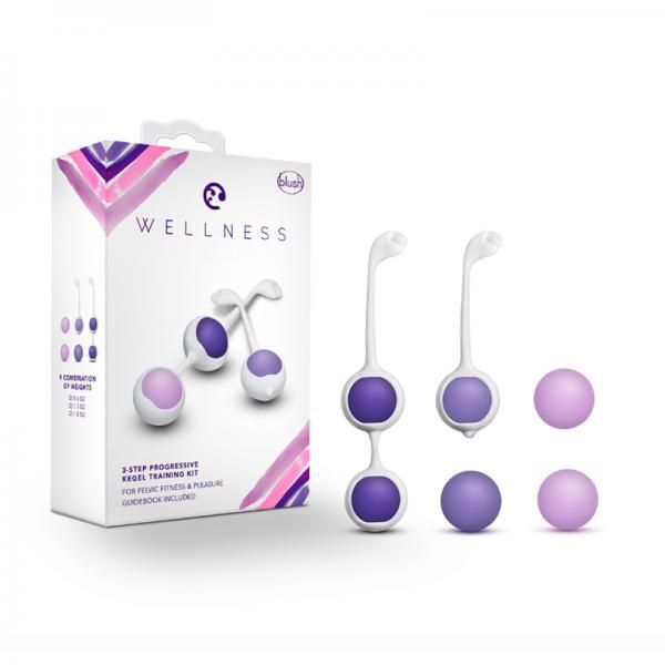 The Wellness Kegel Training Kit delivers a fully customized strengthening routine. This complete set includes six balls, progressively weighted in pairs from 0.6 ounces to 1.8 ounces. The satin smooth silicone balls can be used alone or in pairs, for a total of nine possible weight combinations. Wellness Kegel Balls help strengthen your pelvic floor for better control and more intense pleasure. Make them part of a regular kegel exercise routine, or wear them to heighten arousal during foreplay. All Wellness Kegel Balls are made of platinum cured silicone that`s body safe and easy to keep clean! Dimensions: Length: 6.25 in. Insertable Length: 3.25 in. Width: 1.25 in. Light Purple Balls: 0.6 oz. Medium Purple Balls: 1.3 oz. Dark Purple Balls: 1.8 oz.