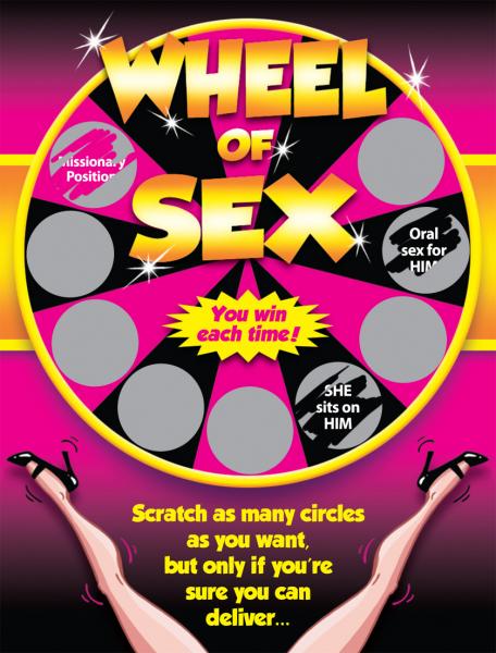 Wheel Of Sex Scratcher Scratch Off Ticket from Ozze Creations. You win each time. Scratch as many circles as you want but only if you are sure you can deliver. Adults only please.