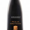 Ingredients: Water, Glycerin, Cellulose Gum, Stevia Rebaudiana Extract, Olea Europaea (Olive) Leaf Extract, Hydroxyethylcellulose, Tetrasodium EDTA, Citric Acid, Sodium Benzoate, Potassium Sorbate, Flavor. Size: 4.0 fluid ounces. Wicked Aqua Salted Caramel Lube 4 ounces from Wicked Sensual Care. Made in the USA.
