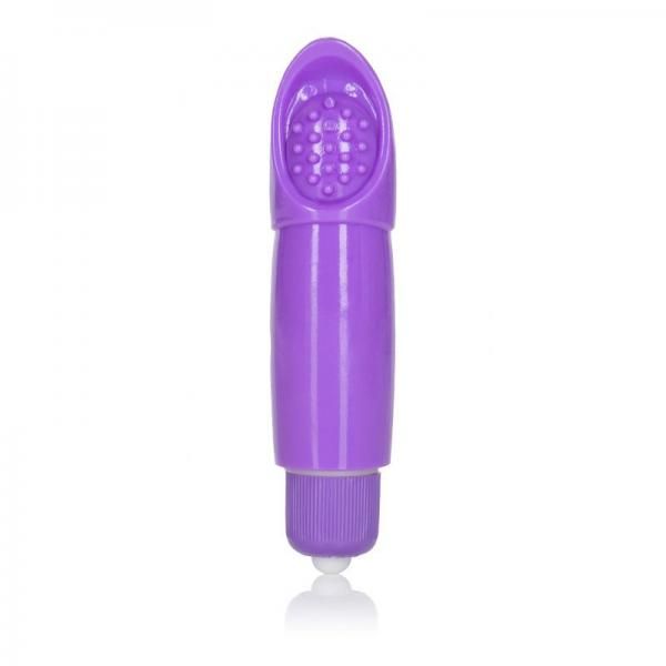 Zinger Purple Vibrator is a waterproof, powerful, soft and supple mini-massagers with easy to operate push button control. Made using phthalate free, non-toxic materials: unscented Thermoplastic Rubber TPR sleeve, ABS plastic vibrator. Requires 1 AAA battery not included. Sleeve on vibrator measures 3.35 inches long by 1 inch wide. Stimulator measures 2.5 inches long by .65 inch wide.